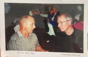 Hayes (left) speaks with U.S. Army Col. David H. Hackworth, one of the most highly decorated soldiers in the Vietnam War.