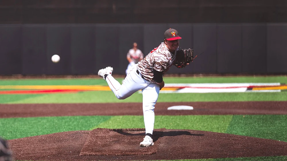 Battling an injury after his first jump, Cameron Thomas ’27, VMI pole vaulter, placed second in the vault with a height of 5.07 meters to earn All-Conference accolades.