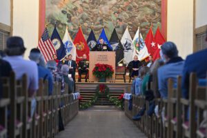 Commissioning cadets take the oath of office during the ROTC joint commissioning ceremony in Memorial Hall Dec. 17, 2025.—VMI Photo by H. Lockwood McLaughlin.